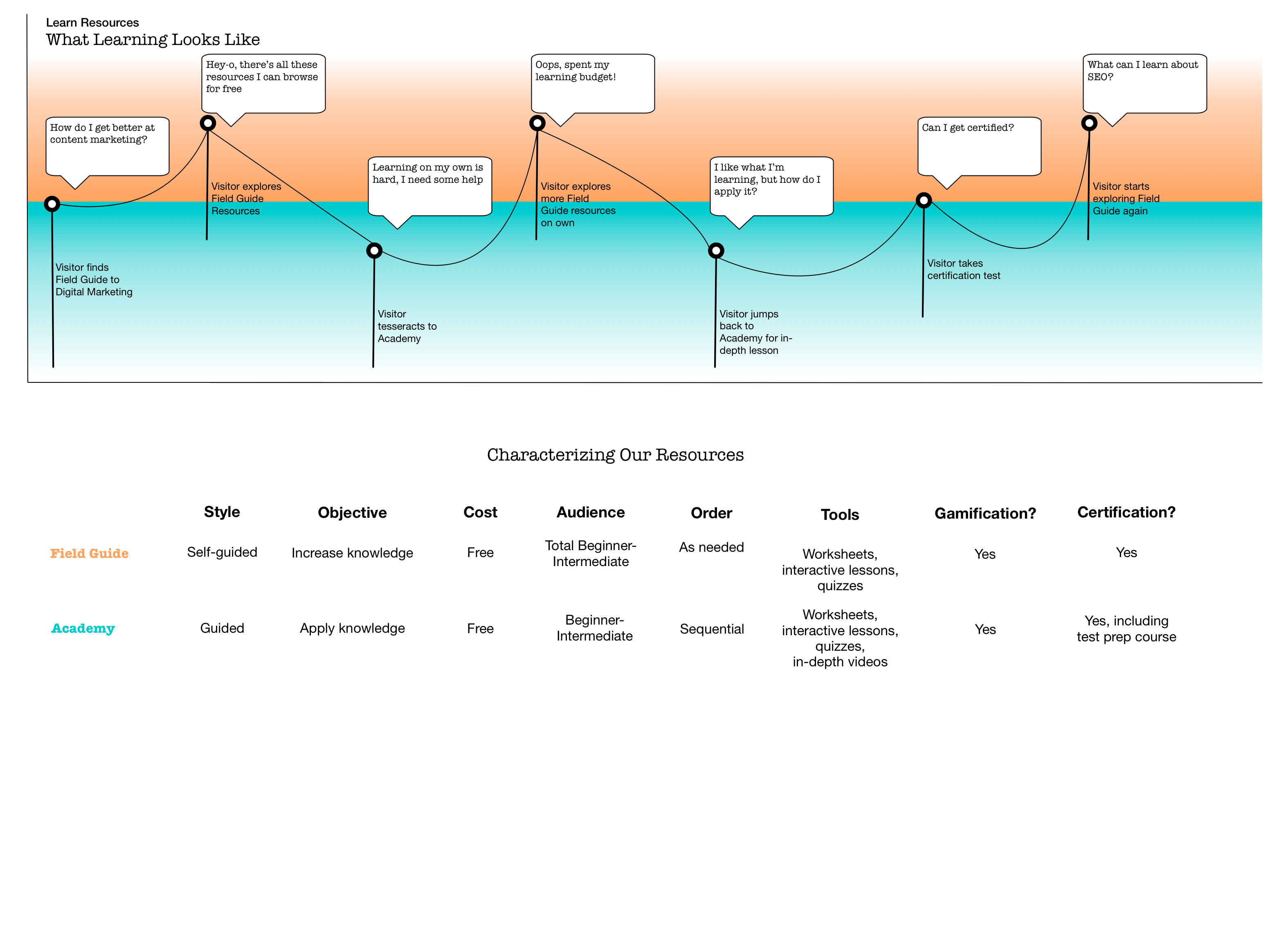 - Learn Center Proposal (.docx). Created to sell the idea to internal stakeholders so I could get started, this document lays out the business case for the project and prior research and projects that the Learn Center would build on.